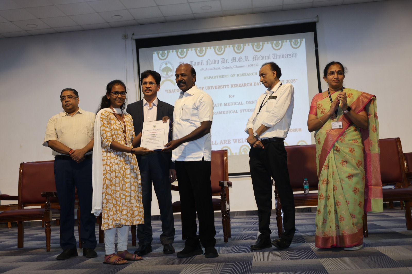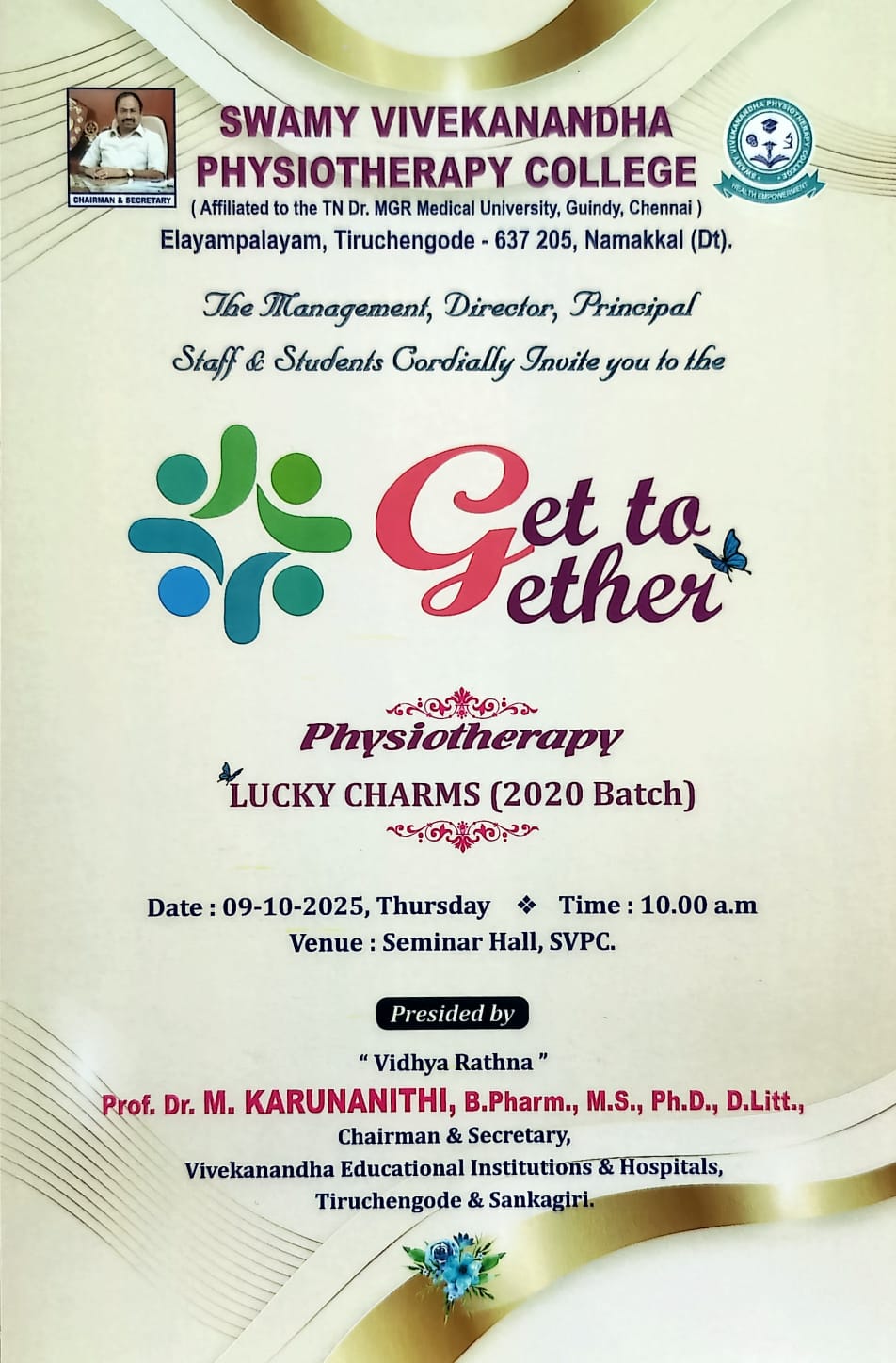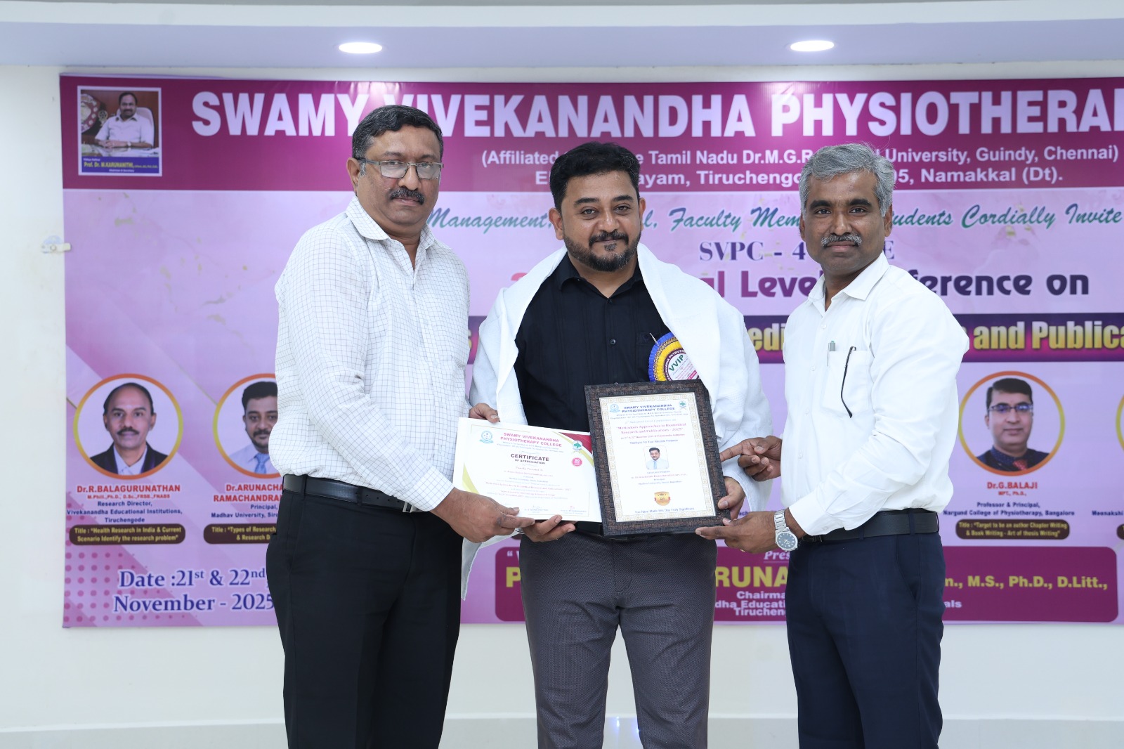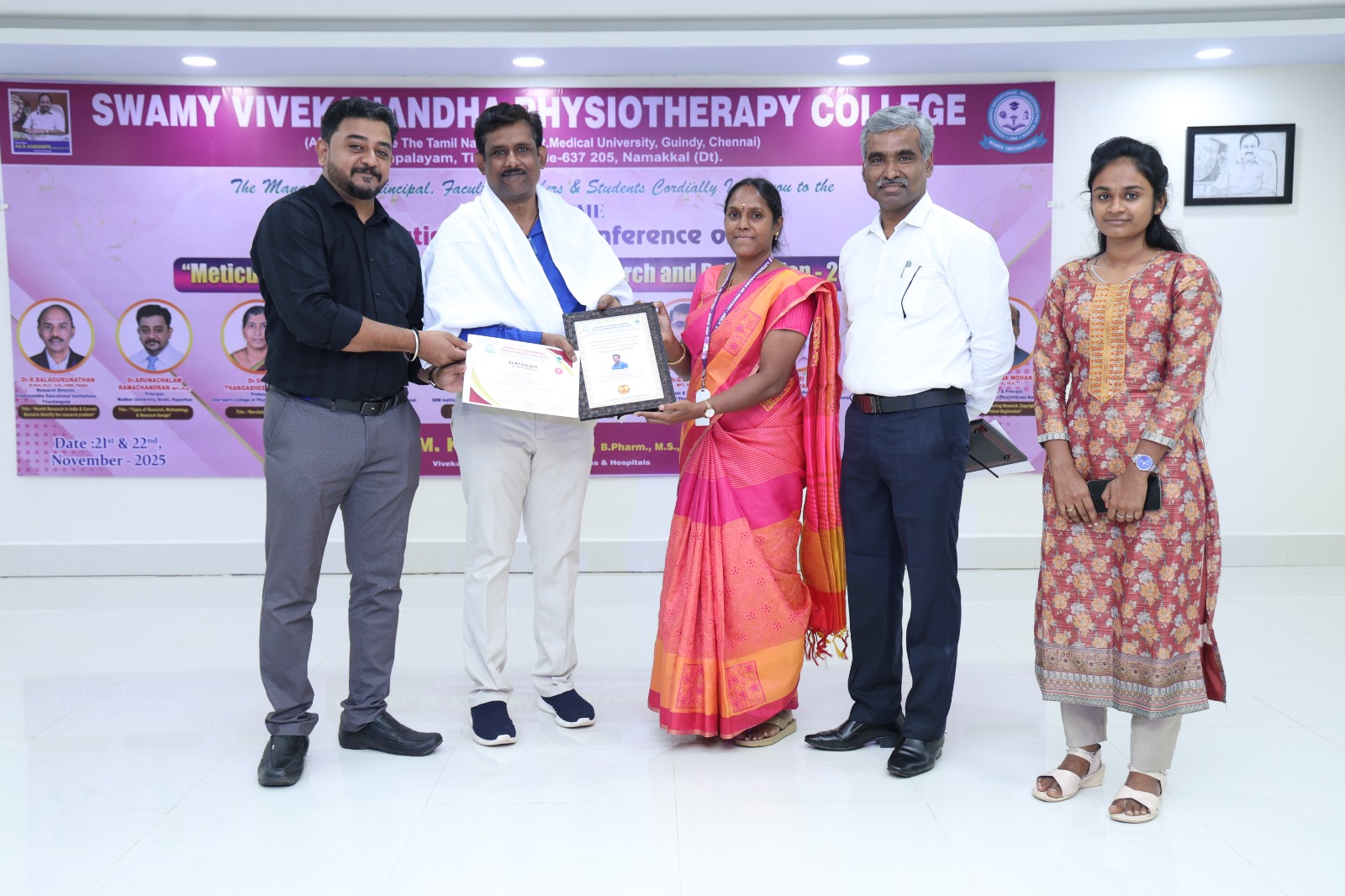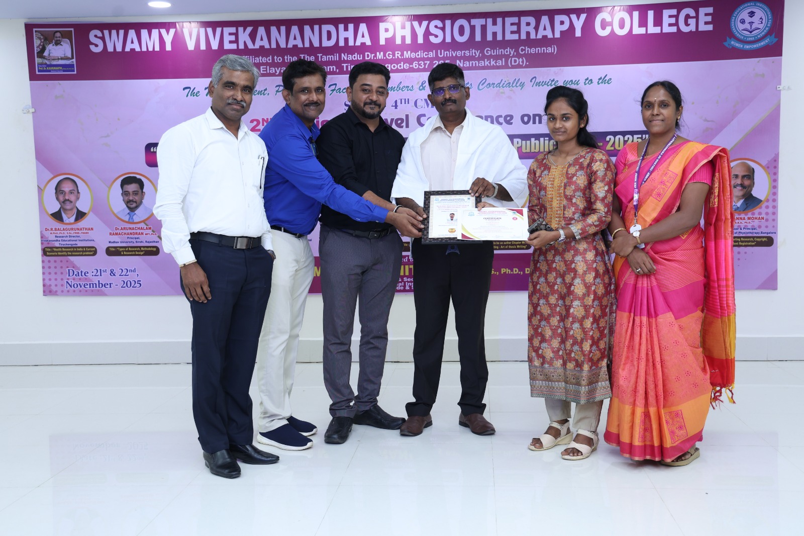 Ms. R. Srinithi of Swamy Vivekanandha Physiotherapy College, Tiruchengode,has been conferred Second Place in the Best Outgoing Student Award among Physiotherapy Undergraduate Students